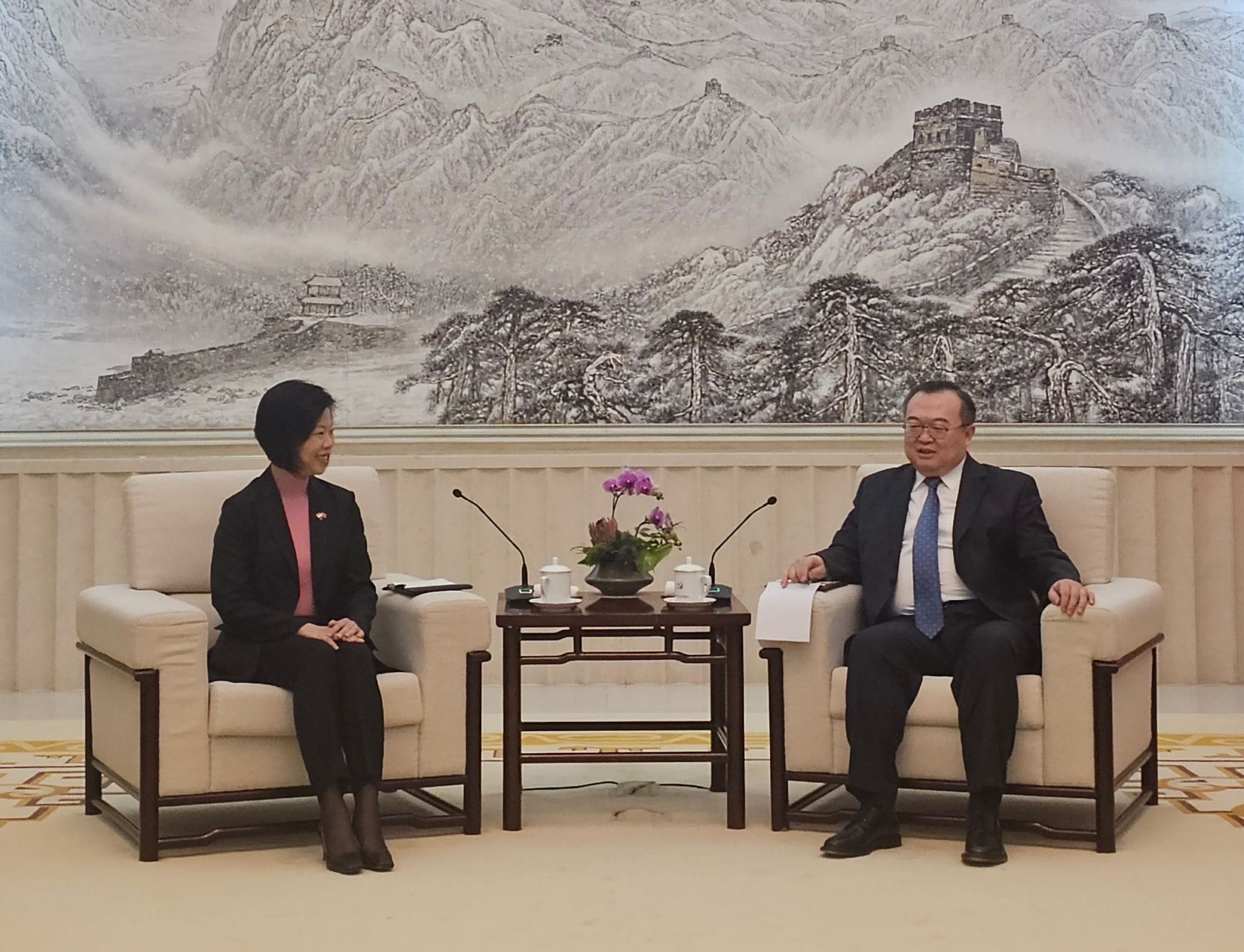 SMS called on Minister of the International Department of the Communist Party of China (CPCID) Liu Jianchao and Vice Minister of Foreign Affairs Sun Weidong. They reaffirmed the good progress made in bilateral cooperation following the 19th Joint Council for Bilateral Cooperation (JCBC) meeting in December 2023, and discussed ways to further deepen cooperation in areas such as human resource development and people-to-people exchanges. They also exchanged views on key regional and international developments.